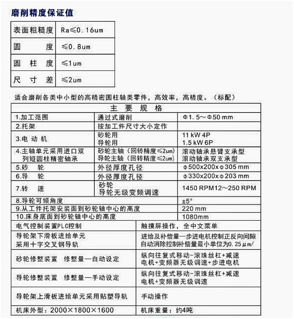 MGT5020高精度无心磨床